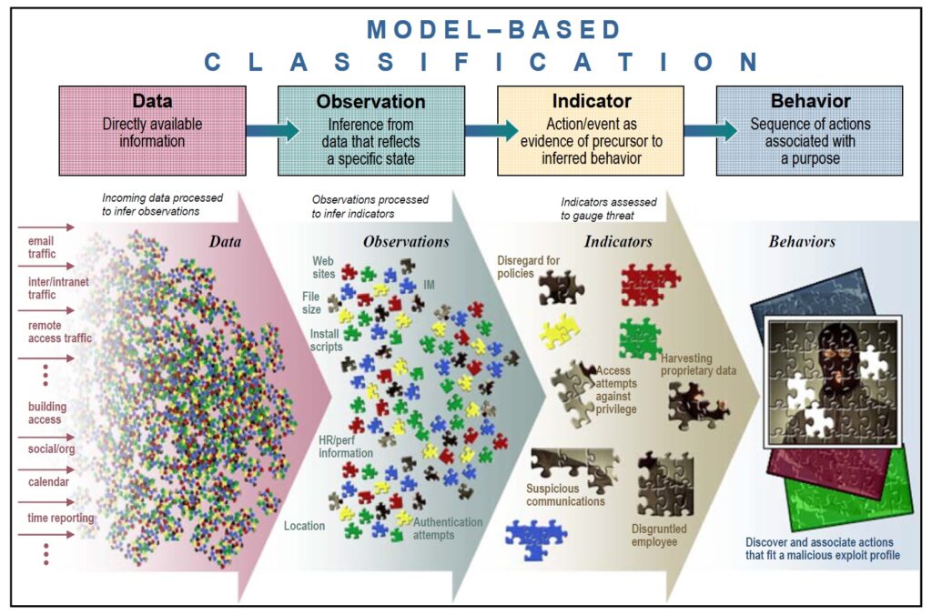 According to PNNL Predictive Adaptive Classification Model for Analysis and Notification, it involves substantial data sources and derivatives to identify insider threats. This may be possible with big data but after all, who will watch the watcher?